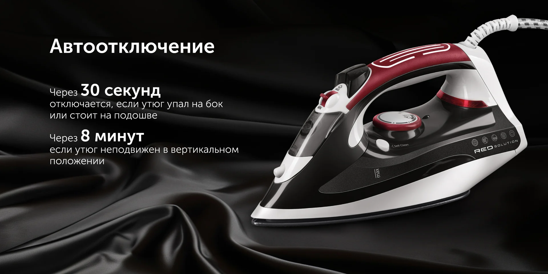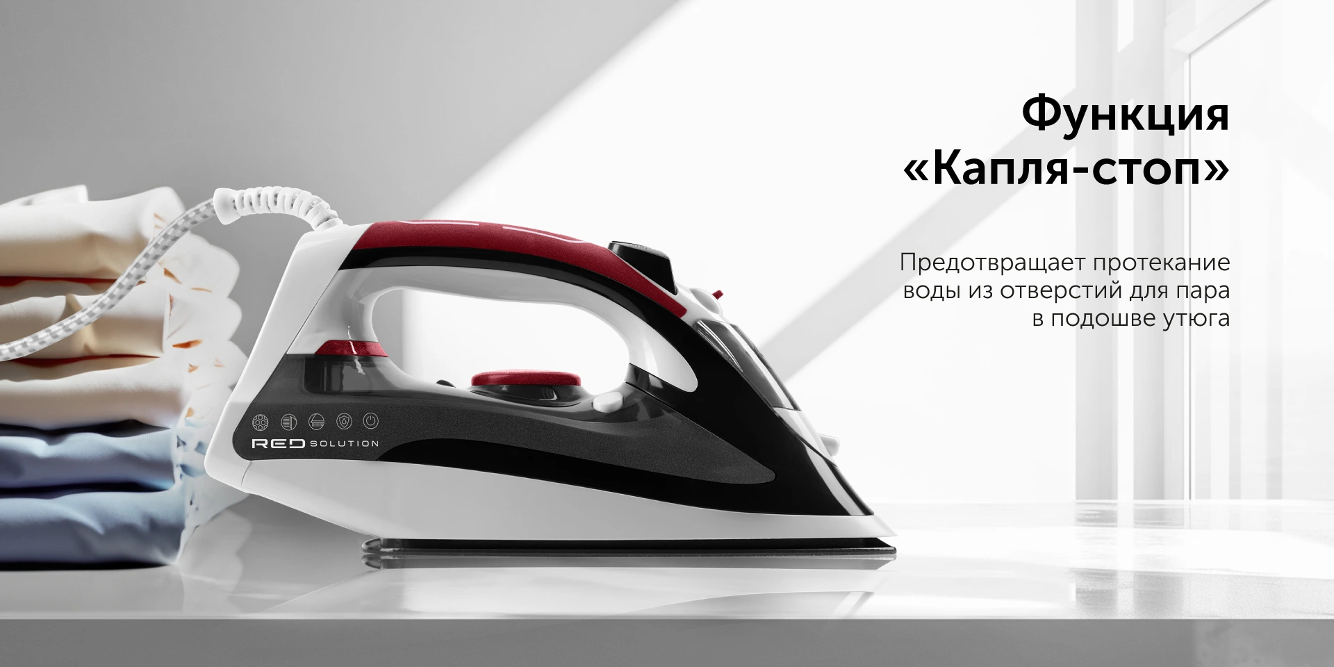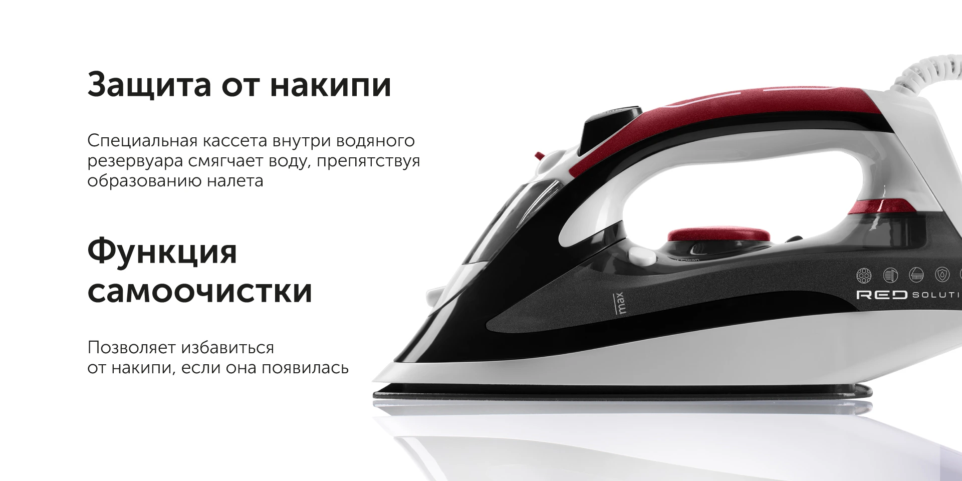 RED SOLUTION I281 — стильный и мощный утюг, с которым глажка из рутины станет приятным и быстрым занятием. Мощность 2200 Вт и функция «Паровой удар» помогут справится с заломами любой сложности даже на самой плотной ткани. Подошва с керамическим покрытием позаботится о сохранности деликатных тканей. Модель защищена от накипи: специальная кассета смягчает воду, препятствуя образованию налета.